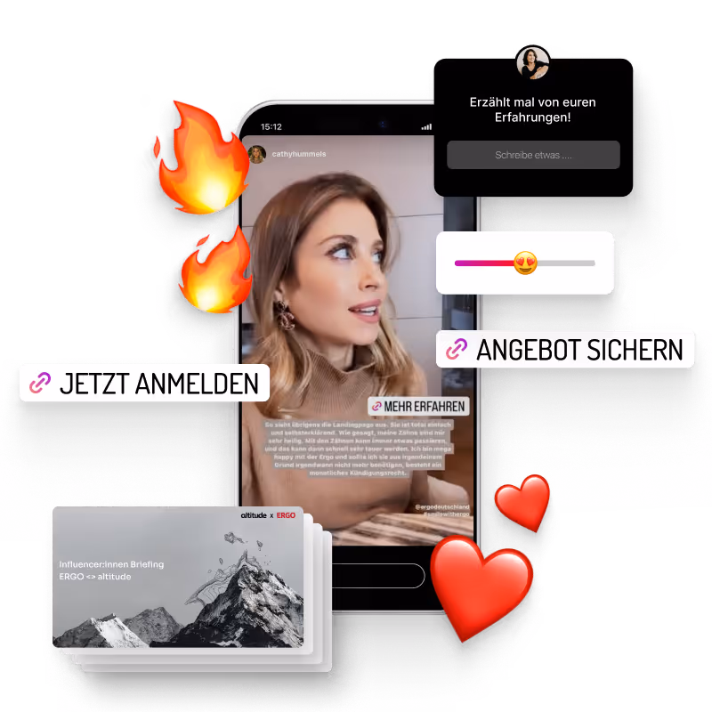 Zu Beginn liefern wir bei altitude ein fundiertes Zielbild mit Messkonzept, das Influencer Marketing als klar messbaren Umsatzkanal aufsetzt: definierte KPIs (u. a. CPO, ROAS, Umsatzbeitrag), Attributionslogik mit Codes/UTMs, ein präzises Testdesign für die erste Welle sowie einen Projekt- und Meilensteinplan mit Verantwortlichkeiten und Freigabepfaden. Unser Anspruch: Jede kreative Entscheidung zahlt nachweisbar auf die vereinbarten Geschäftsziele ein.